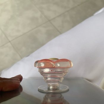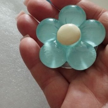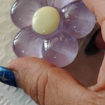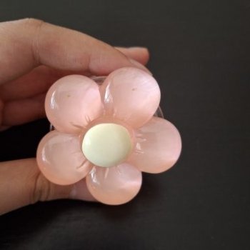 It is very cool, and comfortable being all rubber the flower is hard, as if it were resin, very happy. Is clearer than in the photo.